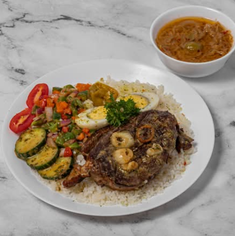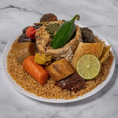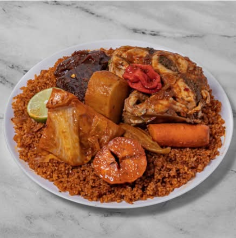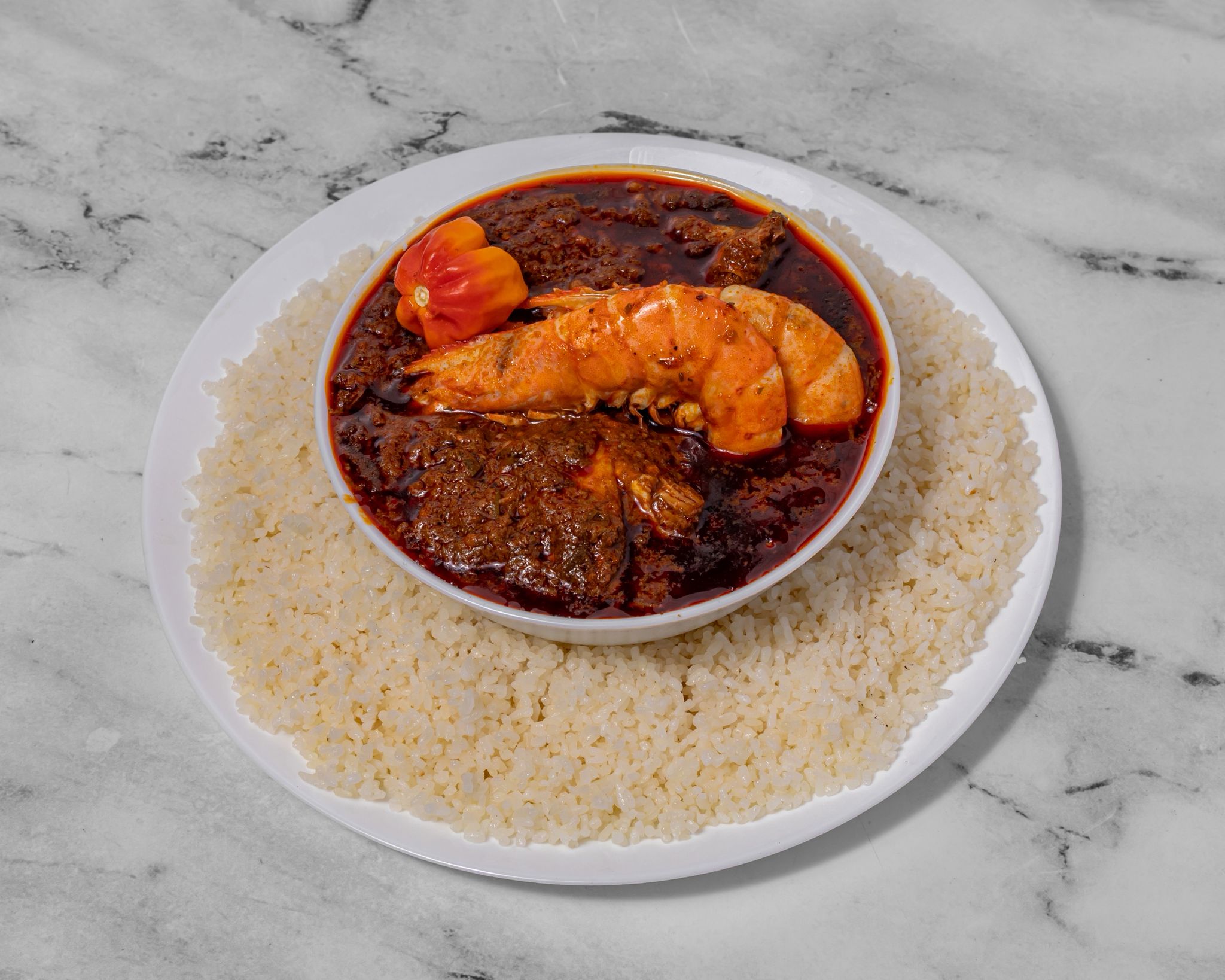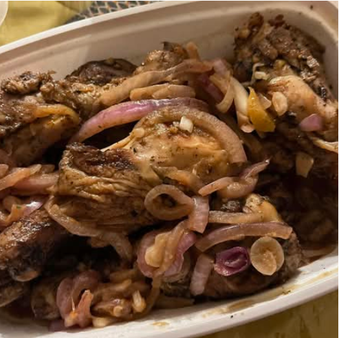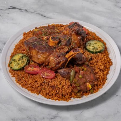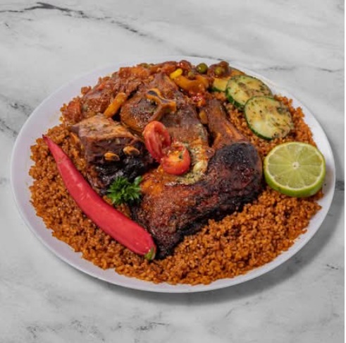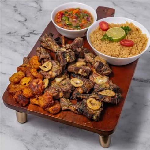 Traditional West African lamb dish, seasoned and prepared for rich, authentic taste per kilogram.