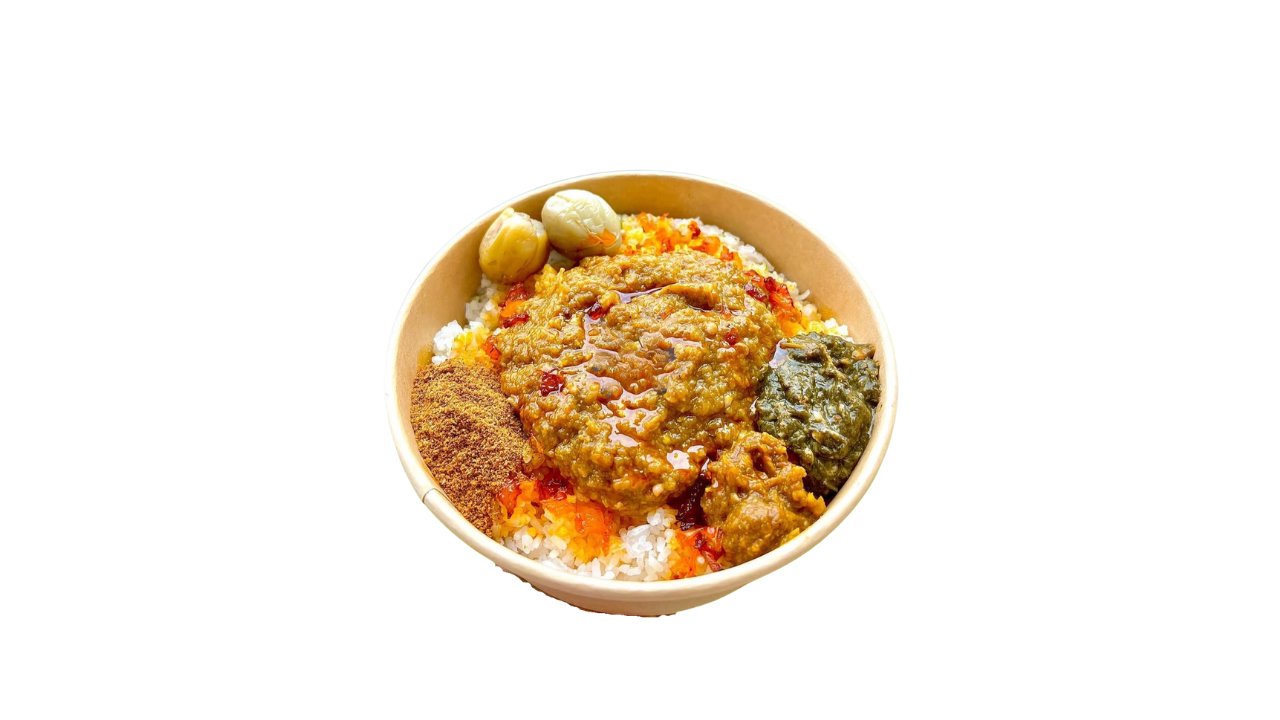 Un classique guinéen à base de riz cassé, accompagné de la sauce savoureuse. Un plat simple, réconfortant et rempli de tradition à chaque bouchée. Avec des crevettes à l'huile rouge et oignons caramelisés.